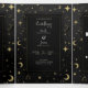 Convite Com Dobra Tripla Casamento Moderno Preto e Dourado Celestial Lua Es