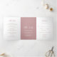 Moderno tudo em um convite triplo de casamento com um simples design com seus nomes em uma tipografia elegante e seus detalhes de evento em uma fonte minimalista de sans serif. O texto do convite é branco sobre um fundo cor-de-rosa rosa empoeirado e o verso tem sua foto favorita. Este convite de casamento chic funciona bem para um casamento de primavera ou verão.