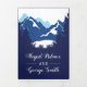 Montanhas azuis e coníferas três vezes o convite para casamentos no inverno. Um belo convite de casamento elegante que mostra uma cordilheira através de coníferas e seus nomes em estilo manuscrito no cobrir. Seu texto de casamento e detalhes estão nos painéis de dentro em quadros brancos com neve atrás de azul escuro. A parte de trás mostra uma foto do casal com suas iniciais enquanto a aba inclui a data do seu casamento.