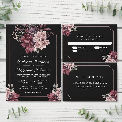 Dark Moody Floral Frame Black WeddingCriado por Shabbir D