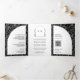 Convite Com Dobra Tripla Casamento Preto e Branco com Arco Folha Mínima