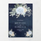 Convite Com Dobra Tripla Casamento Rustic Dusty Blue e Ivory Floral Marinho