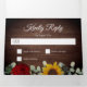 Este convite de casamento triplo inclui um cartão postal de RSVP "embutido" e um cartão de detalhes de casamento com bonito girassóis, rosas vermelhas e eucalipto pintados em forma de aquarela, em um fundo de madeira rústica. Clique no botão personalizar para obter mais flexibilidade na modificação do texto. Variações deste design, diferentes tipos de papel, além de coordenar produtos, estão disponíveis em nosso compro, zazzle.com/store/doodlelulu. Entre em contato conosco se precisar deste design aplicado a um produto específico para criar seu próprio item de correspondência exclusivo! Muito obrigado por ver um DoodleLulu em 2 inseto de junho!