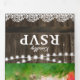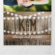 Um convite de casamento trifold rústico country chic 3 em 1 com um fundo de barril de madeira rústica, luzes cintilantes, um design floral de bebê respiração, seu monograma, detalhes do casamento, convite de casamento e um cartão-postal de RSVP para os convidados destacarem e enviarem de volta.