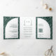 Convite Com Dobra Tripla Casamento Verde Emerald com Arch Folha Mínima