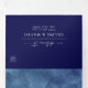 O Convite para Casamento All-in-One Celine Trideal combina elegância e conveniência em um convite maravilhosamente projetado. Este convite com tema celeste apresenta duas fotos personalizadas, um monograma personalizado e um cartão RSVP com estilo postal. A frente mostra o espantoso design Celine Starry sky, enquanto suas fotos de noivado favoritas e o monograma personalizado trazem um toque pessoal. Perfeito para casais que buscam um convite para casamento moderno e prático, este design de triplo garante que todos os seus detalhes importantes sejam apresentados em uma peça coesa e na moda. Parte do Celine Wedding Suite, este convite para todos em um é ideal para casamentos celestiais ou eventos noturnos sob as estrelas.