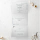Elegante convite de casamento tudo em um com cartão de recepção e cartão-postal de RSVP com textura de branco. Gráficos de guirlandas florais em verde-azul xisto decoram a parte externa frontal e interna do convite. Os monogramas da noiva e do noivo estão na frente do cartão. Personalize todos os campos de texto com suas informações.