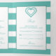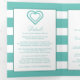 Convite Com Dobra Tripla Chic Heart, Teal Striped Wedding Suite