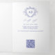 Convite Com Dobra Tripla Classic royal blue French floral QR code wedding