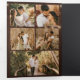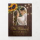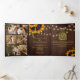 Modelo de convite para colagem de fotos com três vezes o na moda de casamento outono elegante do país rústico, no verão ou no outono, com digitalização do CÓDIGO QR para RSVP online e detalhes sobre madeira de celeiro marrom apresentando belos buquês de girassol e cordas de luzes cintilantes. +++++++++++++++++++++++ O convite é adequado para quintais, celeiros ou casamentos de fazendas modernos e elegantes. +++++++ Fácil de personalizar com 6 imagens de noivado, o seu texto e o seu código QR gerado automaticamente para o seu Web site.