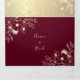 Este elegante convite de casamento triplo emparelha um romântico burgundy e design de gradiente de ouro com sotaques florais e espaço para uma foto pessoal. Com RSVP e seção de detalhes integrados, ele oferece uma solução na moda e ecologicamente consciente para casais modernos. Perfeito para o inverno ou casamentos de férias com uma estética quente e luxuosa. Observe que este convite requer um envelope separado para envio. Recomendamos usar um envelope A9 padrão (5,75" x 8,75").