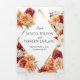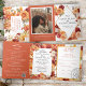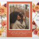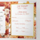 Tudo isso em um triplo convite de casamento apresenta flores pintadas por aquarela em cores perfeitas no outono, de cor laranja, esbranquiçada, amarela, vermelha e rosa com sotaques de folha de ouro. Isto é perfeito para estilos clássicos, contemporâneos e casamentos vintage para a estação do outono. Adicione seus detalhes de casamento, o link do site do Código QR, RSVP e sua foto. Navegue na seleção de coordenando convites, decorações, sinais e muito mais.