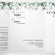 Este design de convite para casamento branco e verde moderno apresenta uma mistura fácil e estilos coordenadores de combinar em preto e branco com elementos verdes delicados, acrescentando um florescimento gracioso em torno de uma simples tipografia sofisticada e um belo roteiro de caligrafia mínimo. A aquarela eucalipto e outras folhas botânicas se espalham lindamente, com a esmeralda escura esmaecendo em um efeito sombrio em verde-menta claro - para adicionar apenas um toque clássico de natureza rústica a um pano de fundo contemporâneo neutro. Esta coleção maravilhosa criaria perfeitamente um ar de elegância polida para o seu casamento formal ou casual de sonho ou outro evento especial. Tal como acontece com todos os nossos designs, se tiverem perguntas ou pedidos especiais, por favor contactem-nos.