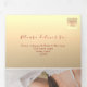 Este moderno convite de casamento triplo apresenta um centro arrojado, enquadrado por um gradiente de ouro quente de champanhe com um roteiro elegante e um motivo de coração minimalista. Projetado para conveniência e estilo, ele inclui espaço para RSVP, site de casamento e preferências de refeições — tudo em um formato ecologicamente correto. Observe que este convite triplo requer um envelope separado para envio. Recomendamos usar um envelope A9 padrão (5,75" x 8,75") para o melhor ajustado.