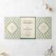 Convite Com Dobra Tripla Cream Emerald Green Ikat All in One Indian Weds
