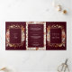 Convite Com Dobra Tripla Cream Terracotta Floral QR Code Burgundy Casamento