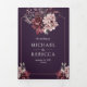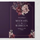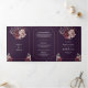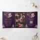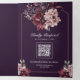 Convite Com Dobra Tripla Dark Purple Moody Floral Frame QR Code Wedding