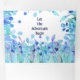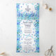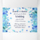 Este bonito convite de casamento triplo vem em uma só peça com todas as informações em uma página. Basta cortar o cartão de resposta e enviar e-mail para a noiva. Flores azuis de aquarela abraçam este convite em lindas sombras de quadros azuis.