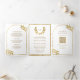 Convite Com Dobra Tripla Dourada Laurel Wreath Deixa Casamento Branco