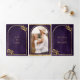 Convite Com Dobra Tripla Dourada Laurel Wreath Deixa Casamento Roxo Real