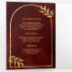 Convite Com Dobra Tripla Dourada Laurel Wreath Deixa Casamento Vermelho Bur