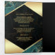 Convite Com Dobra Tripla Dourado Marble Ampersand, moderno Teal