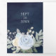 Convite Com Dobra Tripla Dusty Blue Floral Código QR Casamento de Marinho
