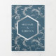 Convite Com Dobra Tripla Dusty Blue Silver Flourish Swirl Wedding Photo