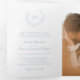 Convite Com Dobra Tripla Dusty Blue Wreath Monograma QR Código Elegante Cas
