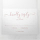 Tudo em um rosa empoeirado triplo convite de casamento com tipografia elegante. O convite inclui os detalhes das informações de convidado de celebração e um cartão RSVP destacável. Projetado por Thisnotme©