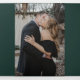 Modern simple minimal typography trendy emerald green all in one budget wedding invitation template with 2 photos, rsvp and details with scanning QR codes featuring a chic trendy calligraphy script and dark overlay. ++++++++++++ Easy to personalize with one or two custom photos (you can upload the same photo on both sides) and guest information on both sides! The invitation is suitable for classic formal contemporary weddings.