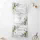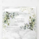Convite Com Dobra Tripla Elegante Dusty Blue Eucalyptus Greenery Marble