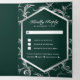 Convite Com Dobra Tripla Emerald Green Silver Flourish Swirl Wedding Photo