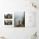 Experimente o romance boêmico encantador deste convite fotográfico de casamento, onde montanhas respiram neblina noturna e sussurros de aventura e amor eterno. Este belo convite à terra combina o seu convite principal, os detalhes do casamento e a carta RSVP em uma peça elegante. Personalize-o exatamente como quiser - adicione mais fotos ou exiba apenas uma imagem especial, ou simplesmente mantenha a paisagem panorâmica da montanha de aquarelas para falar por si mesma. Verdadeiramente deslumbrante e cativante, este convite promete impressionar seus convidados à primeira vista, dando o tom perfeito para sua celebração especial.