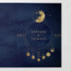 Convite Com Dobra Tripla Fases da Lua Celestial Azul Dourado Crescente