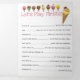 Um design de ilustração de sorvete bonito e colorido com coletes brilhantes de sorvetes em cones de açúcar espalhados ao redor do convite e do arco-íris formando uma fronteira ao redor de sua bela foto de Childs. O flap externo obrigado seus hóspedes por se juntar a você e o dentro tem três jogos divertidos para jogar - bingo de bebê, palavras e jogos de vamos primeiro
