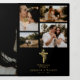 Christian Cross Black Trendy & Stylish Collage Wedding 7 Photos Tri-Fold Invitations Cards.