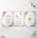 Convite Com Dobra Tripla Floral Púrpura Lilac Dourado Tudo em Um Casamento