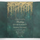 Ilustração de galhos de árvores com um verde-luxuoso e selvagem e folhagem pendurada, em camadas digitais com ouro, sobre um fundo verde-esmeralda brilhante, decora este verão na primavera, tudo em um convite de casamento com um tema de floresta encantado. Um convite elegante e moderno para um casamento de conto de fadas, é o convite perfeito para o casamento triplo que inclui espaço amplo para todas as suas informações de casamento, incluindo presentes e uma curta duração do dia, bem como uma foto. Simplesmente dobrar, selar e enviar. Perfeito para noivas que amam o cenário de conto de fadas, a floresta de fadas ou o tema do jardim de fadas e o verde esmeralda.