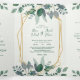 Folhas de Frame Geométrico Elegante | foto Wedding Tri-Fold Invitation Ideal para um casamento de boho, este triplo convite mostra uma estrutura geométrica interligada com verde-luxuoso, criando uma mistura harmoniosa de elegância e encanto rústico. O design abraça as folhas de cor-de-água e eucalipto, moody greenery, evocando um moderno ambiente florestal boêmico. Esta suite de casamento abrangente engloba todos os elementos necessários, convenientemente apresentados em um convite dobrado em solteiro. Dentro deste convite, encontrará não só o seu convite de casamento e detalhes, mas também uma fotografia de noivado, permitindo-lhe partilhar uma memória apreciada com os seus convidados. Além disso, há uma placa de RSVP endereçada a si próprio que os convidados podem facilmente desanexar e enviar e-mails para você, simplificando o processo de RSVP. Para adicionar um toque pessoal, personalize o cobrir frontal com seus nomes e data de casamento, fazer-o exclusivamente seu.