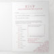 Feita cor-de-rosa, crescendo em folha, casamento de arte botânica, tudo em um, com duas fotos. Personalize este convite de casamento de resposta destacável com os seus próprios detalhes de cerimônia de casamento, agenda, alojamento e outras informações, bem como opções de refeições, respostas e duas das suas fotografias favoritas. Simples design cor-de-rosa, circulando suas próprias iniciais de monograma. Outras cores e itens de casamento correspondentes disponíveis. © Desenho original em folha e design por Sarah Trett para www.mylittleedenweddings.com no Zazzle.
