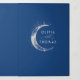 Este marinho azul triplo convite de casamento entrelinha suas fotos tesouras com um tema celestial romântico, fazer perfeito para celebrações sob "Sob as Estrelas", "Para a Lua e Volta" ou "Escrito nas Estrelas". O design combina inteligentemente seu convite, detalhes do casamento - informações e RSVP em um pacote elegante e solteiro. Você também tem a opção de incorporar um código QR substituindo o URL fornecido pelo desejado. Adorado com impressionantes representações de uma lua crescente de prata, halo solar radiante, vários planetas, constelações e galáxias, ele encapsula a beleza que liga os céus noturnos. Escolha para exibir uma imagem de solteiro em ambos os lados ou escolha duas fotos distintas para aumentar a diversidade.