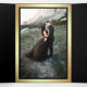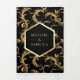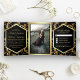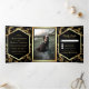 Convite Com Dobra Tripla Foto de casamento com redemoinho em preto e dourad