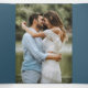 Convite Com Dobra Tripla Foto de Casamento de renda azul-azul Elegante Dust