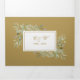 Um convite de aniversário de casamento de ouro de 50 anos, tri-fold elegante e completo, apresentando folhagem de greenery em aquarela, tipografia dourada chic e sua foto especial no verso. O convite inclui os detalhes da sua celebração e um cartão RSVP destacável. Criado por Thisisnotme©