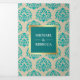 Convite Com Dobra Tripla Foto do Casamento tema damasco do Teal de Folha Go