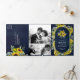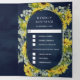 Convite Com Dobra Tripla Girassóis e Eucalyptus 3 em 1 Marinho Casamento Az