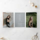 Aproveite um pouco de capricho com uma mistura de digitação neste anúncio de graduação e convite. A frente tem caixas para três fotos de mais velho junto com seu nome, escola e ano de aula. A aba dentro inclui espaço para os detalhes da cerimônia inicial e um convite para uma festa depois. As seções de dentro têm espaço para mais duas fotos e espaço para listar realizações e planos futuros. Design disponível em vermelho, laranja, azul, verde, roxo, marrom, cinza prateada e preto. A design é facilmente alterada para corresponder às suas cores escolares. Produtos correspondentes disponíveis.
