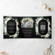 Convite Com Dobra Tripla Ivory Floral Photo Black QR Code Wedding