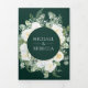 Convite Com Dobra Tripla Ivory Floral Photo Emerald Green QR Code Wedding